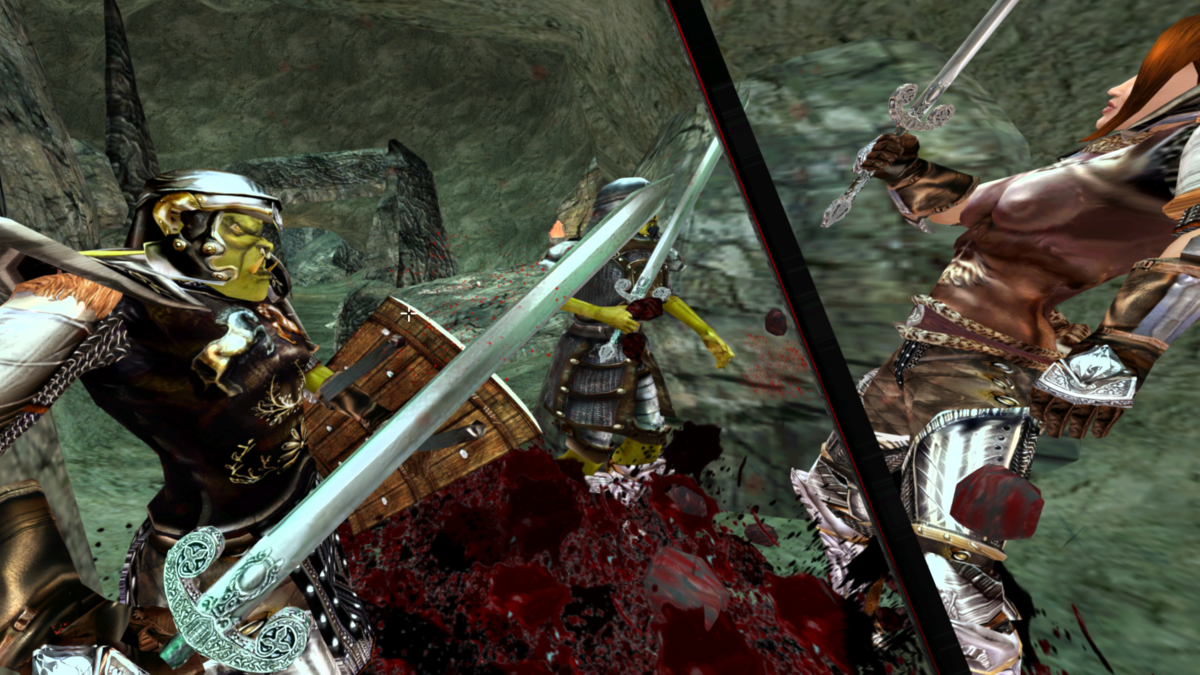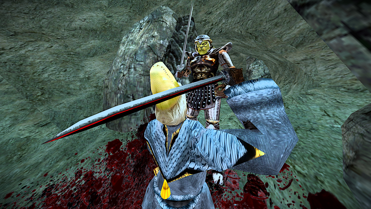 さらに奥に進むと帝国軍の鎧をまとうオークが二人、襲いかかってくる。これはなかなか手ごわい上に、またも麻痺効果のある武器を使うため、苦戦を強いられる。