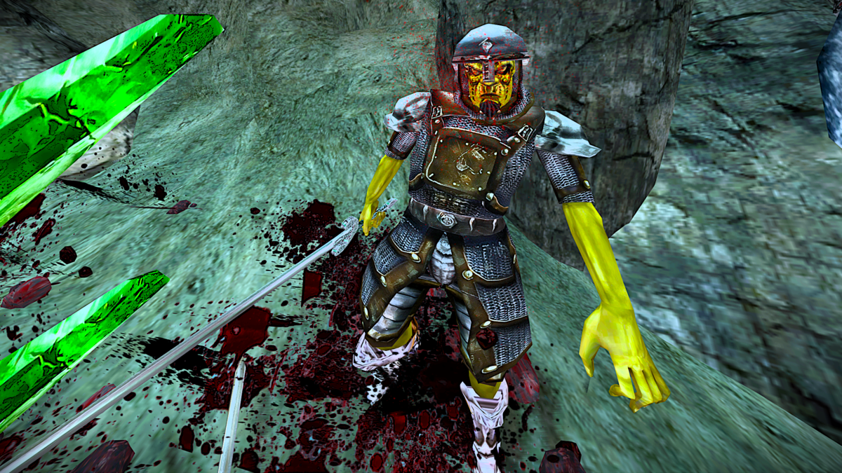 だが、ひとり、またひとりと、敵は冷たい床に沈み、血糊が湯気と鉄臭い臭気をあげつつ洞窟にひろがっていく。